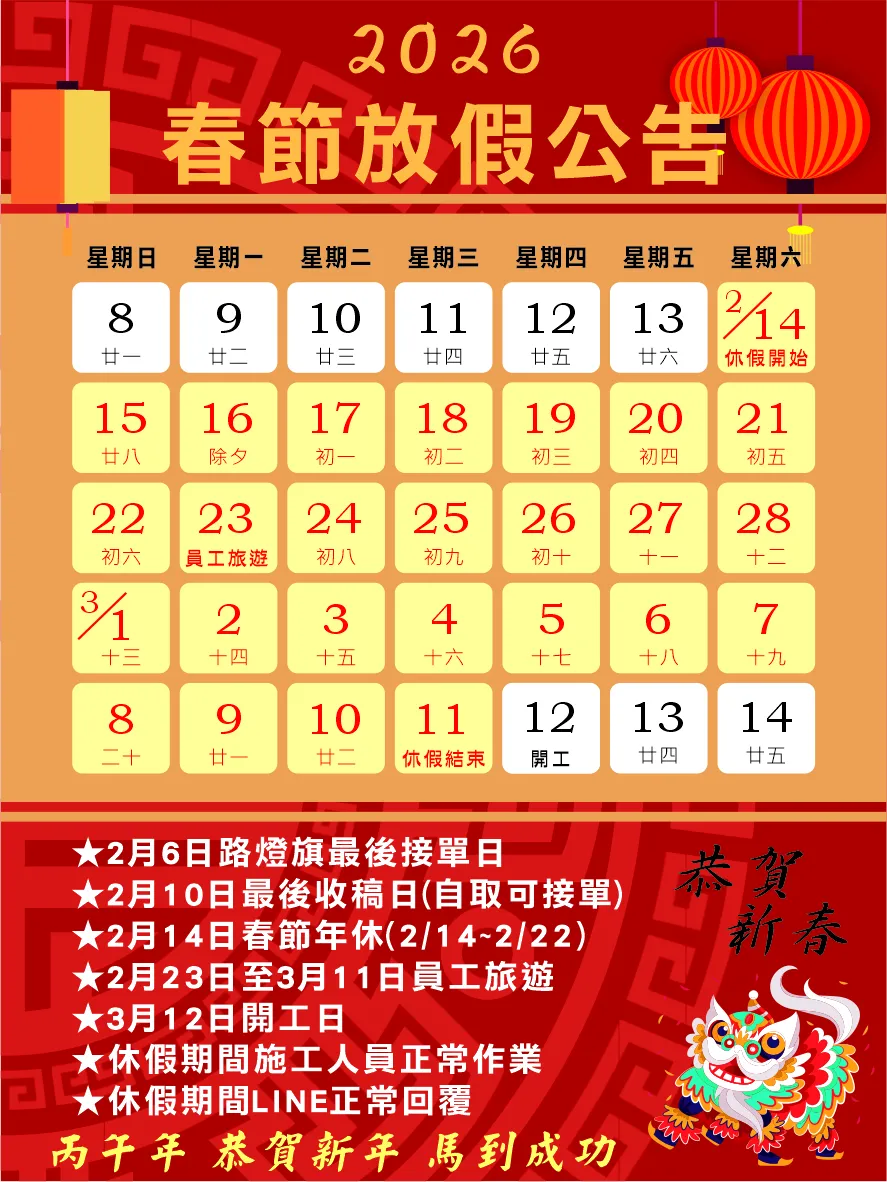 過年休假公告